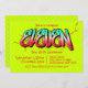 A messy bright neon green graffiti invitation fit for an eleven 11 year old.