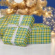 Plaid wrapping paper in bright green, yellow gold and white. A Plaidwerx sporty pattern.