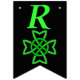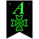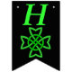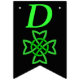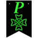 This flag shaped bunting Happy Birthday banner has a bright green Irish Celtic Knot design with loops on a black background. Customize the Happy birthday and year with the templates.