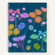 Bright Happy Colorful flowers Dark Teal+Initials Notebook
