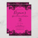 Bright Hot Pink Black Ink Lace 15th Quinceañera Invitation