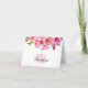Elegant Modern Chic Girly Script Hot Pink Floral Botanical Custom Personalized Monogram Name Folded Note cards. Romantic girly design featuring monogram initial and hand lettered font style first name script and a watercolor spring/summer botanical garden floral vibrant hot pink magenta roses with green leaves arrangement. Perfect, pretty feminine gift idea for business, professional or any occasion.