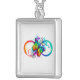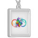 Bright infinity with rainbow butterfly silver plated necklace