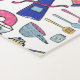 From original artwork. Blue, pink and yellow motifs on a white background.