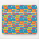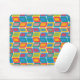 This mouse pad has a mid-century modern design of bright colors that make rounded rectangles with other rectangles inside formed by a collection of lines.