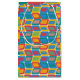 This gift bag has a mid-century modern design of bright colors that make rounded rectangles with other rectangles inside formed by a collection of lines.
