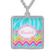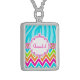 Bright Leopard Zebra Print Chevron Monogram Name Sterling Silver Necklace