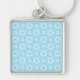 Bright Light Blue White Geometric Symmetry Pattern Keychain