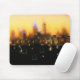 Abstract pixel photography art - bright lights of the city skyline against a glowing gold sunset