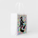 This is a fun bag to express your love for dance. It's a unique design with hand-lettering that forms the shape of a dancing figure, and bright colorful lights fill the background. Use it for groceries or to carry a change of clothes or shoes to dance class.