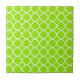 Bright Lime Green and White Quatrefoil Pattern Tile
