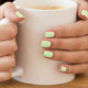 Minx brand stick-on nails featuring a checkerboard pattern in a bright lime green color with white. An easy way to have a super cute and stylish manicure!