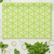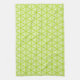 Clusters of intricate, bright lime green swirls in a triangle pattern adorn this cute kitchen towel