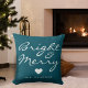 Bright Merry Script Heart Family Name Christmas Throw Pillow