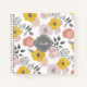 A bright cheerful floral pattern in a trendy color combination of mustard yellow, pink and gray make a lovely design for your home or office notes. A scallop edged frame surrounds your desired monogram initial and name. Personalize the design template with your name and monogram for a unique design that expresses your style. The inside pages of this notebook can be printed in a variety of options or with blank pages as a sketch book. Choose your preferred option for how you wish the inside pages to appear.