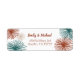 Elements: abstract elements, names are in a delightful script, with details in a fun sans serif font. Colors: dark teal, peacock, ocean, sea green, copper, ginger, bisque, bone, coconut, linen. Themes: bright, modern, spring, summer, fall, whimsical, bohemian, contemporary, funky, offbeat, winery, expressionist, boho chic. Collection: Bright Modern Abstract Dark Teal, Copper, Bisque Wedding Collection Product Type: Return Address Labels