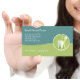 Bright modern unique Dentist office business cards in a trendy simple design in shades of green with dentistry tooth and toothbrush emblem in coordinated colors. An editable online template for the Dental industry.