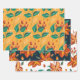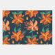 Bright modern floral berry and green leaves botanical pattern wrapping paper sheets in red yellow orange navy colors.