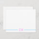 Personalized stationery flat note cards with thin sans-serif monogram initials and thin line in bright hot magenta pink and neon cyan blue. Colors and fonts can be edited to match your favorite colors, birthday party thank yous, or mitzvah stationery.
