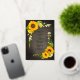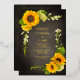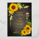Bright chic yellow sunflowers on a rustic chalkboard background wedding foil invitation. A modern take on a classic invitation.