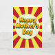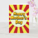This card features a creamy white circle in the center with the words “Happy Mother’s Day” set prominently inside it, creating a sweet, affectionate focus ❤️. The letters are plump and rounded, filled with a glossy orange-yellow tone and outlined with a thin dark green edge that makes them look slightly raised. The message sits centered within the circle, with even spacing that keeps the layout tidy and easy to read. Behind the circle, wide red rays and bright yellow rays spread outward like a sunburst, giving the scene a cheerful, celebratory energy. The warm color pairing suggests closeness and care, like a big hug captured in color rather than words. The circular emblem feels like a gentle spotlight, drawing attention to the greeting while the background adds movement and excitement 🌼. Red and yellow stripes radiate from behind the center circle, alternating evenly across the full background.