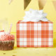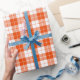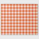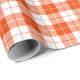 A wrapping paper designed with a bright orange and white plaid pattern. Customize the white background among other options.