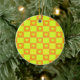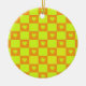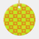 Bright Orange Green Checkered Tile With Hearts Ceramic Ornament