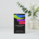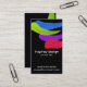 Bright paint strokes on a black background (change the background if you wish) make up a professional looking yet fun business card.