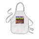This apron is made with a durable fabric! My grandson LOVES it! The shape provides great coverage to protect clothes from paint spatters, etc. The print quality is excellent! The detailed lines of the dragon drawings are printed in a crisp, clean manner.