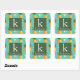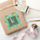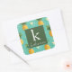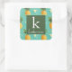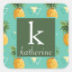 Bright Pineapples On Geometric Pattern | Monogram Square Sticker