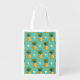Bright Pineapples On Geometric Pattern Reusable Grocery Bag