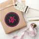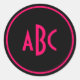 Bright Pink and Black Circle Monogram Classic Round Sticker