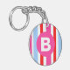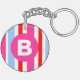 Bright Pink and Blue Candy Stripes Monogram Keychain