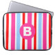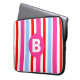 Bright Pink and Blue Candy Stripes Monogram Laptop Sleeve