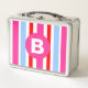 Bright Pink and Blue Candy Stripes Monogram Metal Lunch Box
