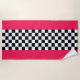 A black and white classic checkerboard pattern, with some bright vibrant pink.