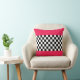A black and white classic checkerboard pattern, with some bright vibrant pink.