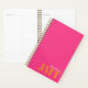 Orange letters for your monogram appear on a bright pink background. Beige text is available for a custom message if desired (Shown: 2026 Planner) All text can be edited or deleted.