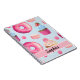 Cute and colorful bright pink doughnuts and cupcakes on baby blue and pink, personalized notebook. Perfect to use as a journal or to jot down a few notes.