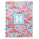 Bright Pink Flamingos On Blue | Add Your Initial Notebook