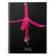 A personal sized, spiral bound notebook that features a cover photo image of a bright, pink Fuchsia flower against a contrasting, black background. A lovely, floral design! Use as a journal or to keep important notes.