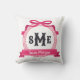 Bright Pink Greek Key Bow Monogram Throw Pillow