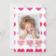 Bright Pink Hearts Photo Valentine's Day Card with modern heart pattern and photo overlay with script handwritten typography on the front. The back has a longer personal message from the sender/family. Click the edit button to customize this design with your photos and details.