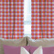 Bright Pink Orange Red Hand-Drawn Checkered Plaid Sheer Curtains