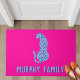 Bright Pink Personalized Modern Cheetah Door Mat. Available in 3 different sizes. Customize with your last name, your family name, the word "welcome," "hello," or anything else.