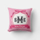 Bright Pink Reverse Greek Key Bow Monogram Throw Pillow