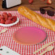 Bright Pink to Orange Gradient Solid design. Vivid and colorful hot bright pink ombré color fade design. By Kierkegaard Design Studio.