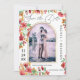 This modern and elegant wedding save the date card is perfect for the contemporary couple. It features a faux printed gold double arch border and handwritten signature script typography on top of a simple white background and a photo of the lovely couple. The design includes hand-painted red pink, burgundy red, bright golden yellow, and fern green watercolor flowers, leaves, and berries. It's pretty, country, sweet, and trendy; the perfect design for your special occasion.