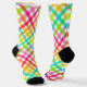 This fun Halloween socks are bright and colorful. The small print is crisp and shows the fun details. The softness of the socks feels nice on my feet and ankles. .