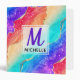 Bright Rainbow & Gold Faux Glitter Agate Monogram 3 Ring Binder